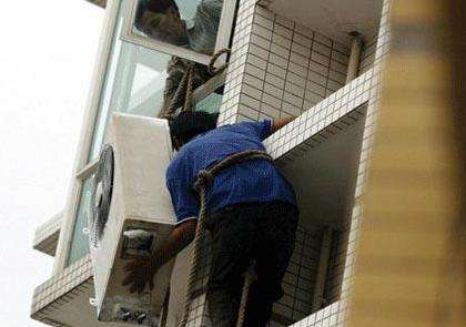 拆卸室外機時,在卸放的同時注意平衡避免振動搖晃,最后用塑料包好以便搬運。